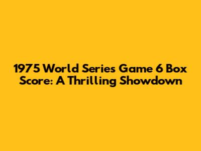 1975 World Series Game 6 Box Score: A Thrilling Showdown
