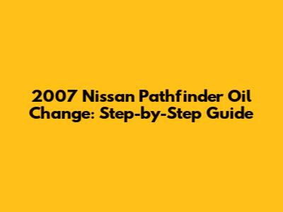 2007 Nissan Pathfinder Oil Change: Step-by-Step Guide