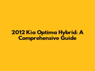Unveiling the 2012 Kia Optima Hybrid: Specs and Features