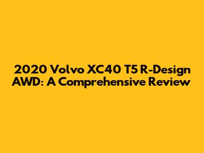Hey guys! Let's dive into a detailed exploration of the 2020 Volvo XC40 T5 R-Design AWD. This compact SUV has been making waves with its stylish design, impressive performance, and a plethora of features that cater to both comfort and safety. If you're in the market for a premium subcompact SUV, the XC40 T5 R-Design AWD is definitely one to consider. Let’s break down what makes this car stand out, covering everything from its exterior and interior design to its performance, technology, and overall driving experience. Buckle up, because we're about to take a comprehensive ride!
