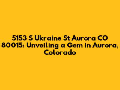 Hey guys! Today, we’re diving deep into a property that’s been catching a lot of eyes: 5153 S Ukraine St, Aurora, CO 80015. This isn't just another address; it's a potential dream home or investment opportunity nestled in the vibrant city of Aurora, Colorado. Whether you're a first-time homebuyer, an experienced investor, or just curious about the local real estate scene, stick around as we unpack everything this location has to offer. Understanding the nuances of a property like this requires more than just a glance; it's about delving into the details that make it a unique and valuable asset. So, let’s get started and explore what makes 5153 S Ukraine St a standout address in Aurora.