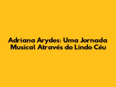 Adriana Arydes: Uma Jornada Musical Através Do Lindo Céu