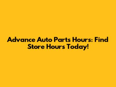 Advance Auto Parts Hours: Find Store Hours Today!