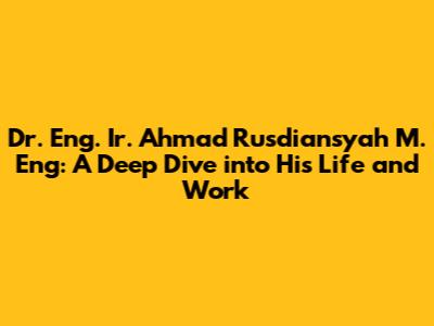 Let's explore the life and accomplishments of Dr. Eng. Ir. Ahmad Rusdiansyah M. Eng, a prominent figure in his field. We'll cover everything from his early education to his current endeavors, giving you a comprehensive overview of his journey. Whether you're a student, a professional, or simply curious, this article aims to provide valuable insights into his contributions and expertise.