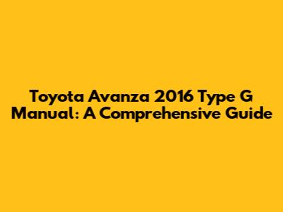 Understanding the Avanza 2016 G Manual