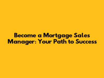 Become A Mortgage Sales Manager: Your Path To Success