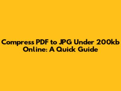 Compress PDF To JPG Under 200kb Online: A Quick Guide