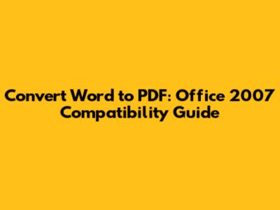 Convert Word To PDF: Office 2007 Compatibility Guide