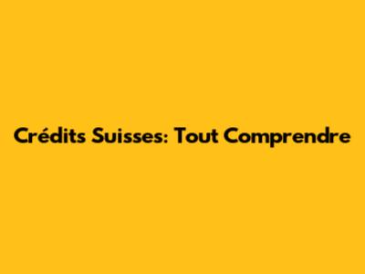 Crédits Suisses: Tout Comprendre