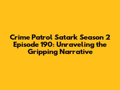 Hey guys! Let's dive into the world of Crime Patrol Satark Season 2 Episode 190. This show, known for its gripping narratives and realistic portrayal of crime, continues to captivate audiences with its intense storytelling and social messages. Episode 190 is no exception, offering viewers a chilling glimpse into the dark underbelly of society and the relentless pursuit of justice. Crime Patrol Satark is not just another crime show; it’s a reflection of the harsh realities that exist around us, aiming to create awareness and caution among its viewers. The show meticulously recreates crime scenarios, often based on real-life incidents, making it both engaging and informative. The attention to detail, combined with strong performances from the cast, ensures that each episode leaves a lasting impact. The narrative structure typically involves a detailed investigation process, highlighting the challenges faced by law enforcement and the complexities of solving crimes. The emotional aspect of the victims and their families is also given significant importance, adding depth and realism to the storytelling. Furthermore, Crime Patrol Satark emphasizes the importance of being vigilant and taking necessary precautions to prevent becoming a victim of crime. It serves as a constant reminder of the potential dangers lurking in our communities and the need for collective responsibility in maintaining safety and order. By shedding light on various types of crimes, from petty theft to heinous acts, the show educates viewers about the different modus operandi employed by criminals and the measures they can take to protect themselves and their loved ones. This educational aspect, coupled with its entertainment value, makes Crime Patrol Satark a unique and impactful television program. So, grab your popcorn and settle in as we dissect the intricacies of this compelling episode.