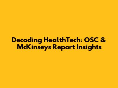 Decoding HealthTech: OSC & McKinsey's Report Insights