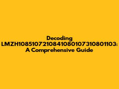 Decoding LMZH1085107210841080107310801103: A Comprehensive Guide