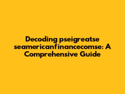 Decoding Pseigreatse Seamericanfinancecomse: A Comprehensive Guide