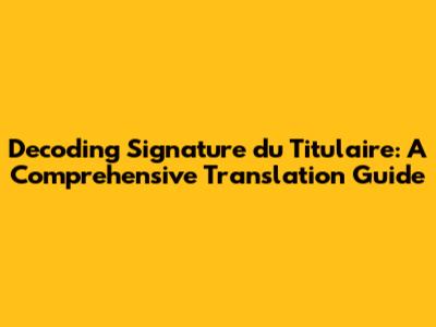 Decoding 'Signature Du Titulaire': A Comprehensive Translation Guide
