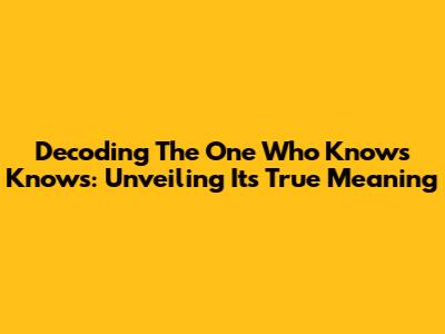 Decoding 'The One Who Knows Knows': Unveiling Its True Meaning