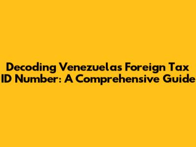 Decoding Venezuela's Foreign Tax ID Number: A Comprehensive Guide