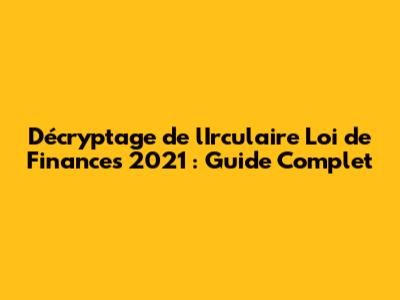 Décryptage De L'Irculaire Loi De Finances 2021 : Guide Complet