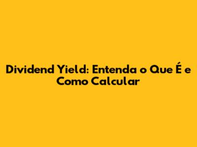 O Que é Dividend Yield?