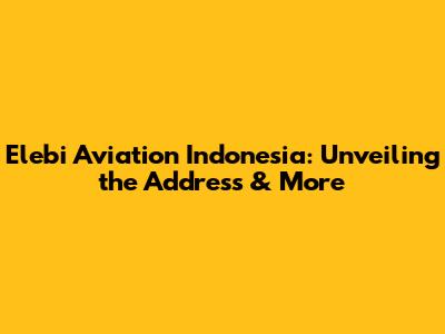 Elebi Aviation Indonesia: Unveiling The Address & More