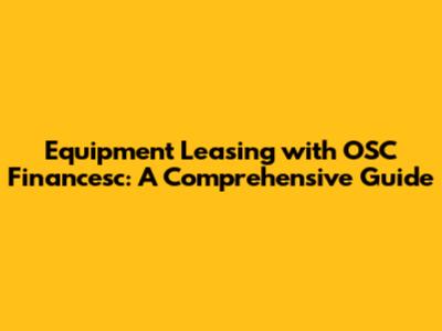 Equipment Leasing With OSC Financesc: A Comprehensive Guide