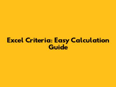 Excel Criteria: Easy Calculation Guide