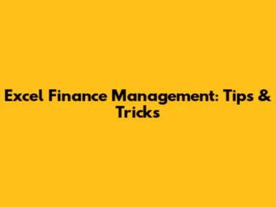 Excel Finance Management: Tips & Tricks