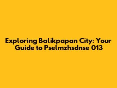 Exploring Balikpapan City: Your Guide To Pselmzhsdnse 013
