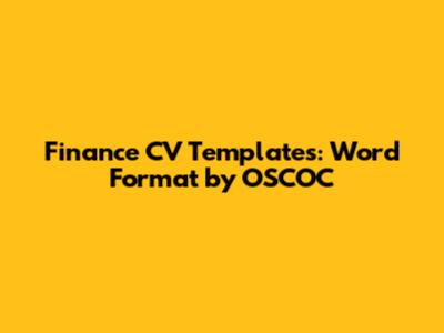 Finance CV Templates: Word Format By OSCOC