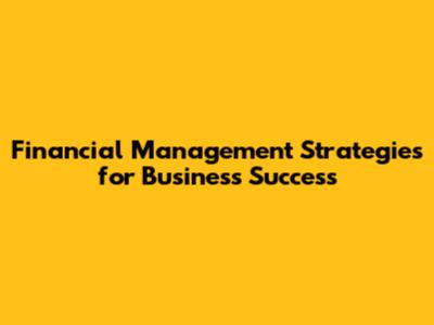 Financial Management Strategies For Business Success
