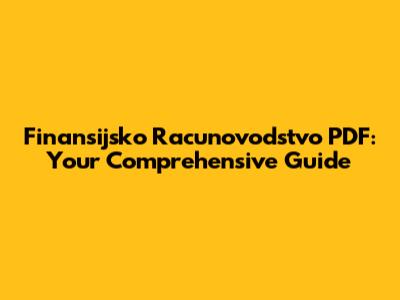 Finansijsko Racunovodstvo PDF: Your Comprehensive Guide