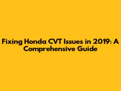 Fixing Honda CVT Issues In 2019: A Comprehensive Guide