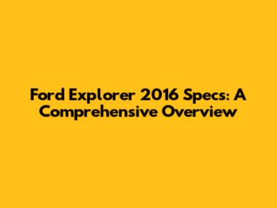 Ford Explorer 2016 Specs: A Comprehensive Overview