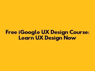 Free IGoogle UX Design Course: Learn UX Design Now