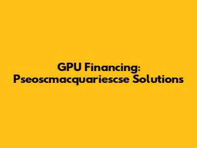 Exploring Pseoscmacquariescse and Potential GPU Financing Options