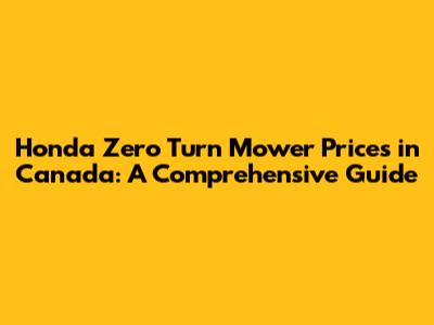 Honda Zero Turn Mower Prices In Canada