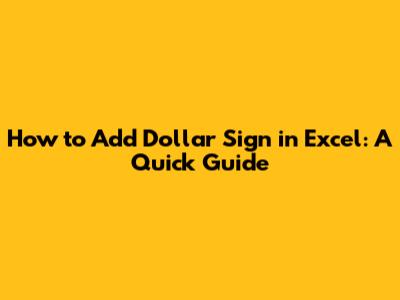 How To Add Dollar Sign In Excel: A Quick Guide