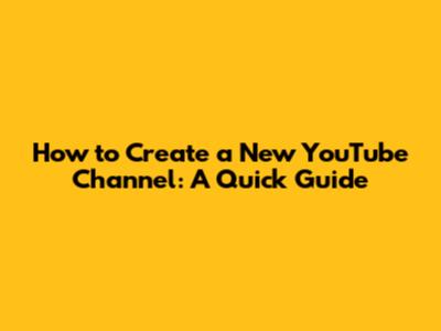 How To Create A New YouTube Channel: A Quick Guide