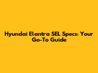 Hyundai Elantra SEL Specs: Your Go-To Guide