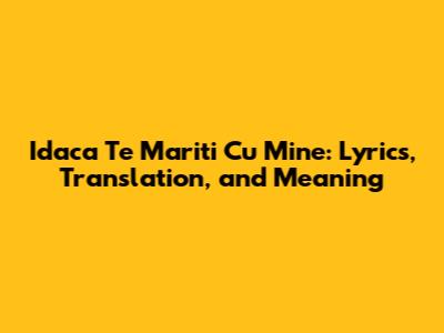 Idaca Te Mariti Cu Mine: Lyrics, Translation, And Meaning