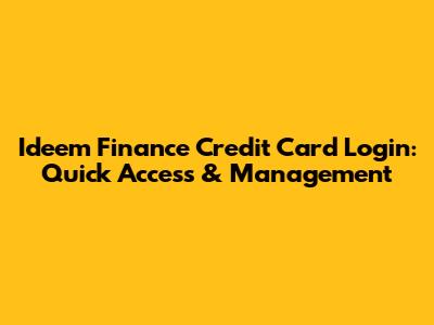 Ideem Finance Credit Card Login: Quick Access & Management