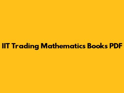 IIT Trading Mathematics Books PDF