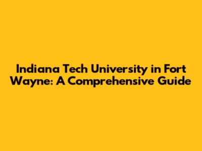 Indiana Tech University In Fort Wayne: A Comprehensive Guide