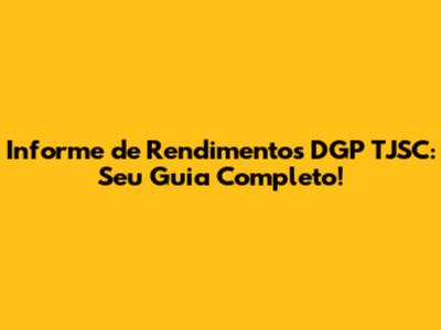 Informe De Rendimentos DGP TJSC: Seu Guia Completo!