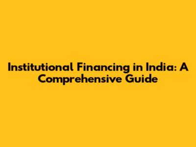 Institutional Financing In India: A Comprehensive Guide