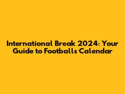 Hey football fanatics! Ready to dive into the International Break 2024? It's that time again when club rivalries take a backseat, and the world's best players unite to represent their nations. Get ready for a whirlwind of emotions, nail-biting matches, and the sheer unpredictability that makes international football so captivating. This year promises to be especially exciting, with crucial qualification matches, friendly clashes, and preparations for major tournaments all on the agenda. So, grab your jerseys, prepare your snacks, and let's break down everything you need to know about the International Break 2024! We will explore the dates, the key matches to watch, and the potential impacts these breaks will have on your favorite club teams. Get ready to be in the know, because missing out on the international break action is simply not an option for true football fans! We'll cover everything from the FIFA international match calendar to how these breaks can impact player fitness and club strategies.