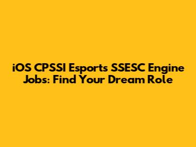IOS CPSSI Esports SSESC Engine Jobs: Find Your Dream Role