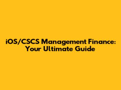IOS/CSCS Management Finance: A Comprehensive Guide