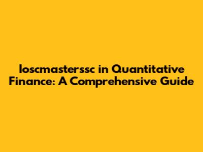 Ioscmasterssc In Quantitative Finance: A Comprehensive Guide