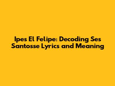 Hey guys! Let's dive deep into the captivating world of Ipes El Felipe and unravel the enigma behind their song, "Ses Santosse." This track has been making waves, and many of you are probably curious about what the lyrics really mean. So, let’s break it down and explore the lyrical genius and potential interpretations of this amazing piece. We will consider various aspects, from the rhythm to the cultural references it could be pointing to. Hopefully, by the end, you'll have a clearer understanding and a deeper appreciation for "Ses Santosse."