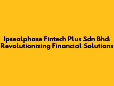 Hey guys! Ever heard of Ipsealphase Fintech Plus Sdn Bhd? If you're even remotely interested in fintech, this is a name you should definitely know. Let's dive into what makes this company a game-changer in the financial technology landscape. We'll cover everything from their core business to their impact on the industry. So, buckle up, and let’s get started!